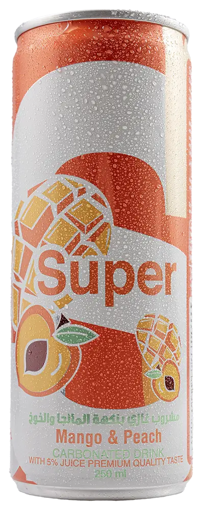 Super Mango Peach… a magical blend of sweet mango and rich peach flavor with a touch of natural juice that gives it a distinctive taste. Light and sparkling, with a refreshing balance of flavors that makes every experience feel like an unforgettable tropical getaway!